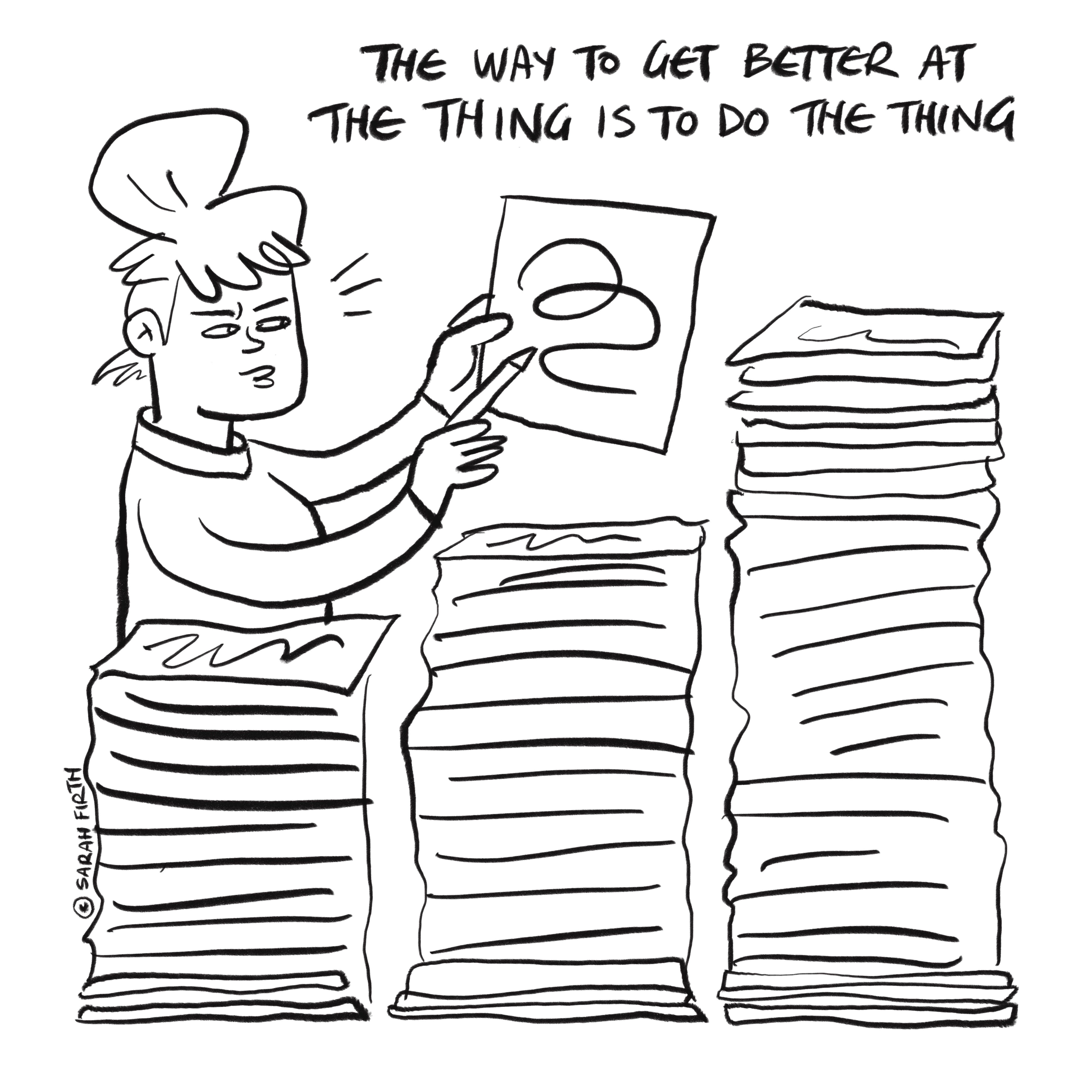 I perpetually forget then remember that in order to get better at something, I really just need to do it. A lot. Badly for a while. And then slowly my understanding, skill, competence and ability builds. There is a need for self-compassion, a willingness to be “embarrassing” and “cringe”. To be persistent, patient and not lose hope. To welcome the hard work and the process. To take small wins, stack up learnings, and only compare yourself with where you were, rather than comparing yourself to people who are doing things leagues above what you can currently do, or people who claim to find it so easy. This particularly pertains to my experience of creative work. Doing has so much more value than scheming, the perfect plan, doing all the courses, trying to do it right and looking for some secret hack.